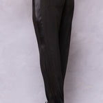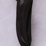 - Satin contrast racing stripe down sides of legs