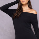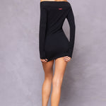 Sleek, minimal, and confidently feminine — the Off Shoulder Mini Dress delivers a sculpted silhouette with a touch of edge. Designed to be worn on or off the shoulders, this versatile style doubles as a fitted long sleeve tee or a mini dress, offering an effortlessly polished look that transitions from day to night.