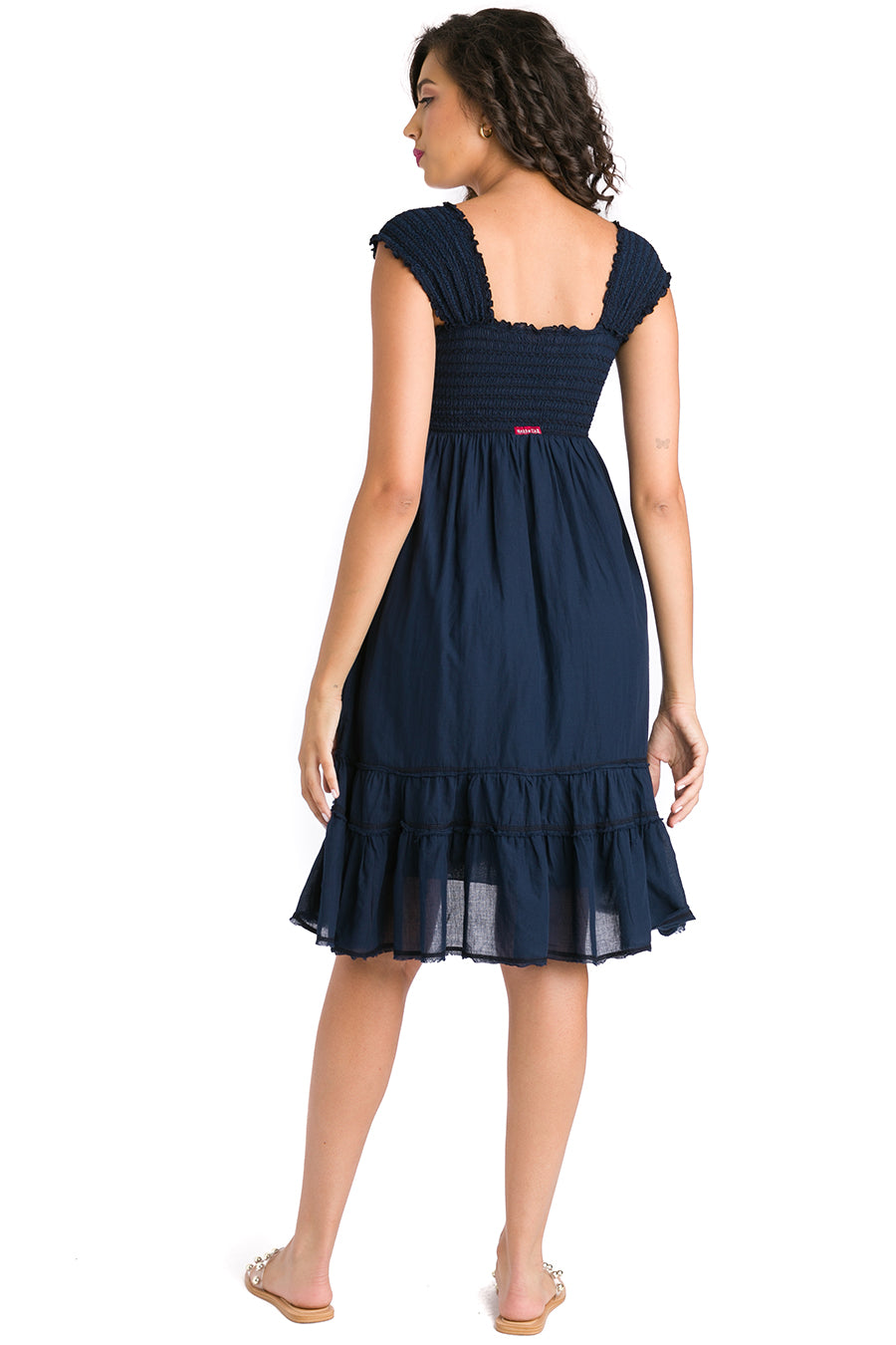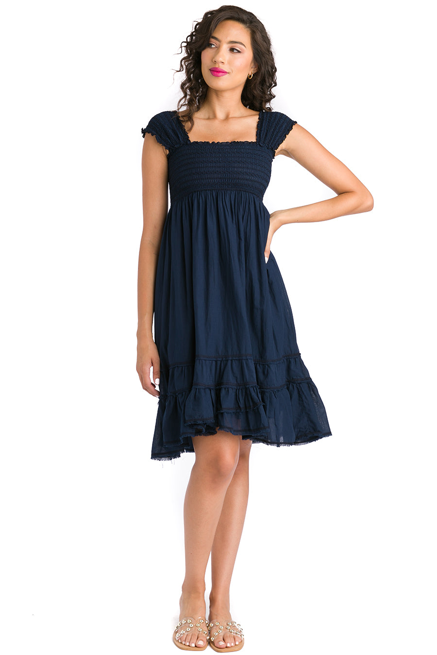 Ruched Shoulder Smocked Dress
