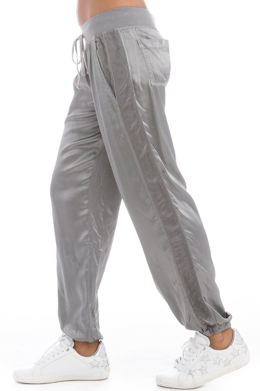 Effortless joggers in a washable (yes WASHABLE!) satin fabric that is sporty and stylish for all of your adventures to come. Tuck in your favorite tees and tanks for a luxe casual look.