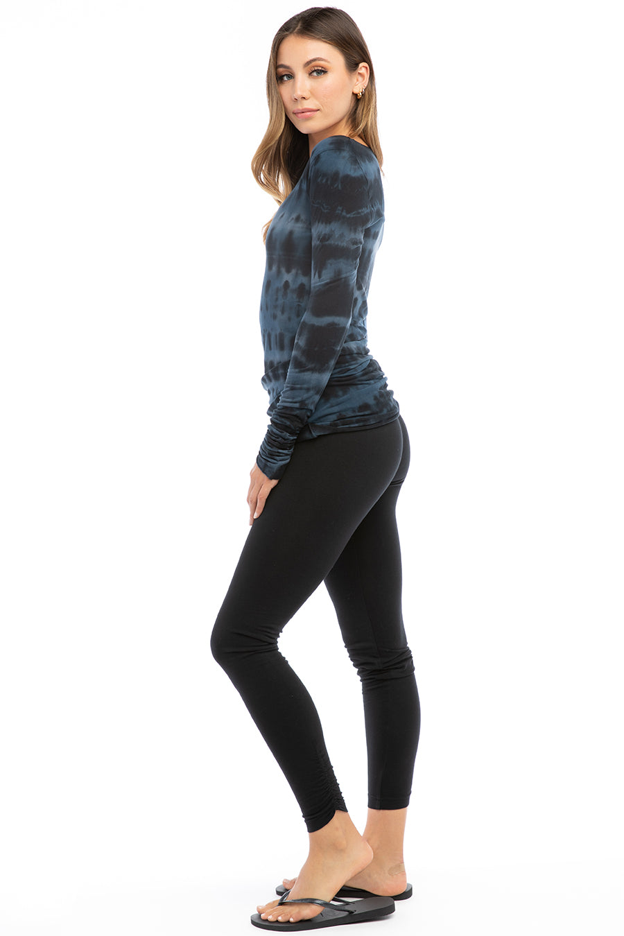 Razor Back Rolldown Side Shirred Ankle Legging