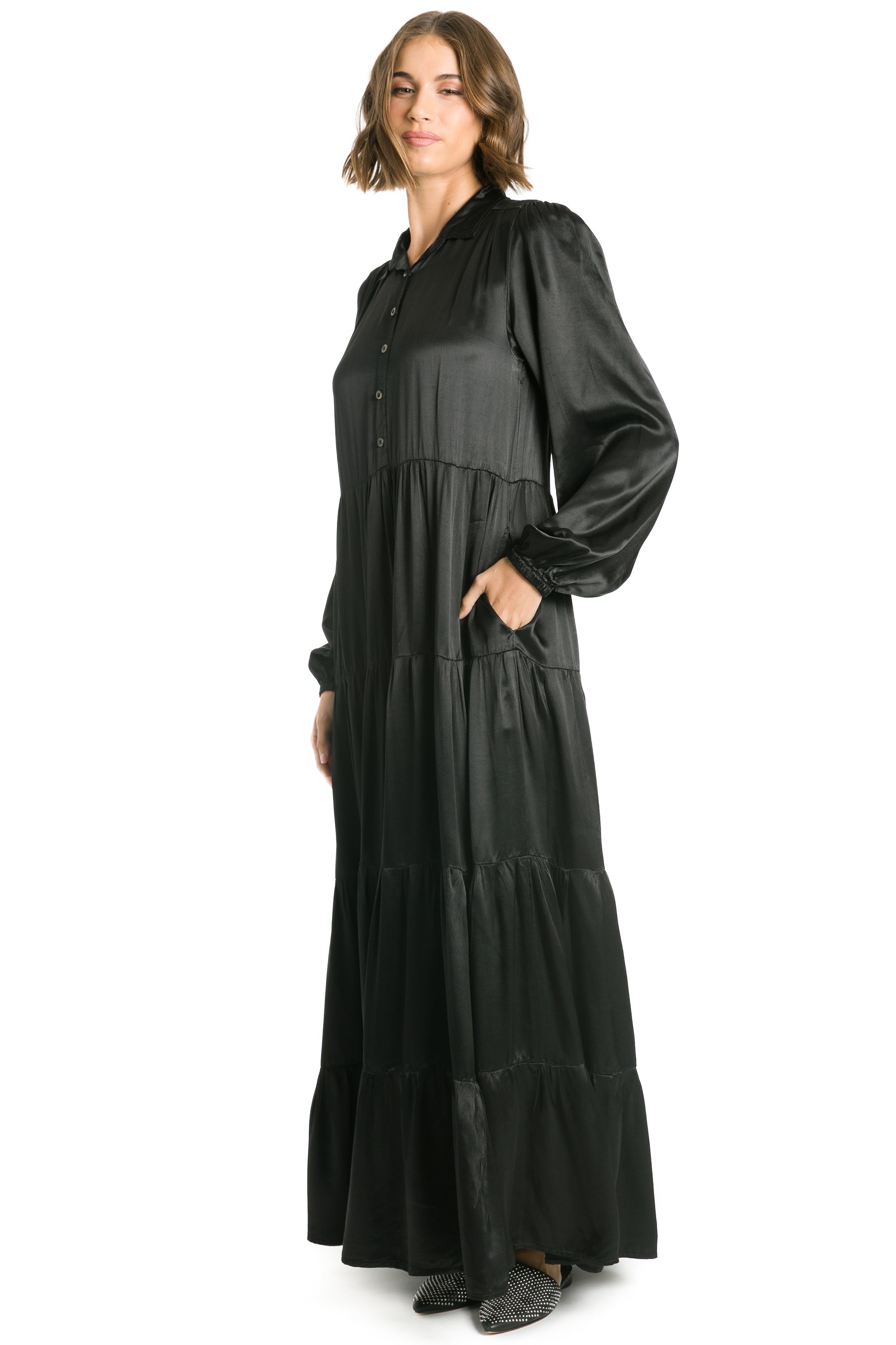 Satin Ruffle Maxi Dress
