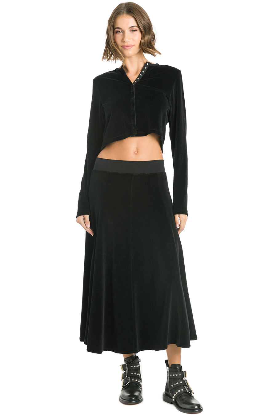 Velour Princess Panel Midi Skirt