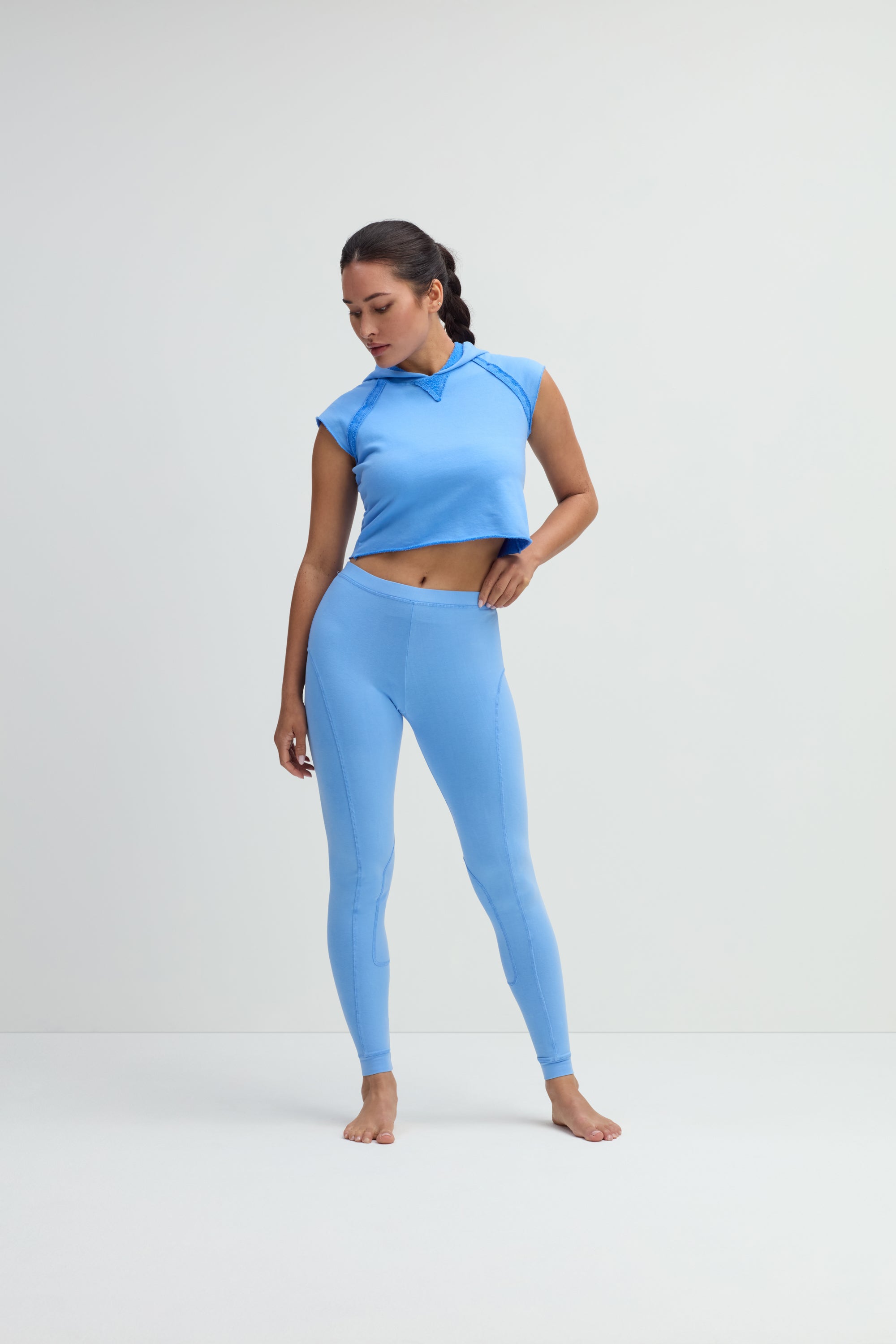 Effortless, sleek, and made for everyday wear — Equestrian Legging is your new go-to for comfort with a refined edge. Designed with subtle riding-inspired panel seams, this legging adds a touch of structure while keeping a relaxed, minimal look. Made from a soft cotton and lycra blend, it moves with you and maintains its shape throughout the day. The elastic waistband and fitted ankle hem provide a secure, flattering fit, perfect for lounging, layering, or heading out.