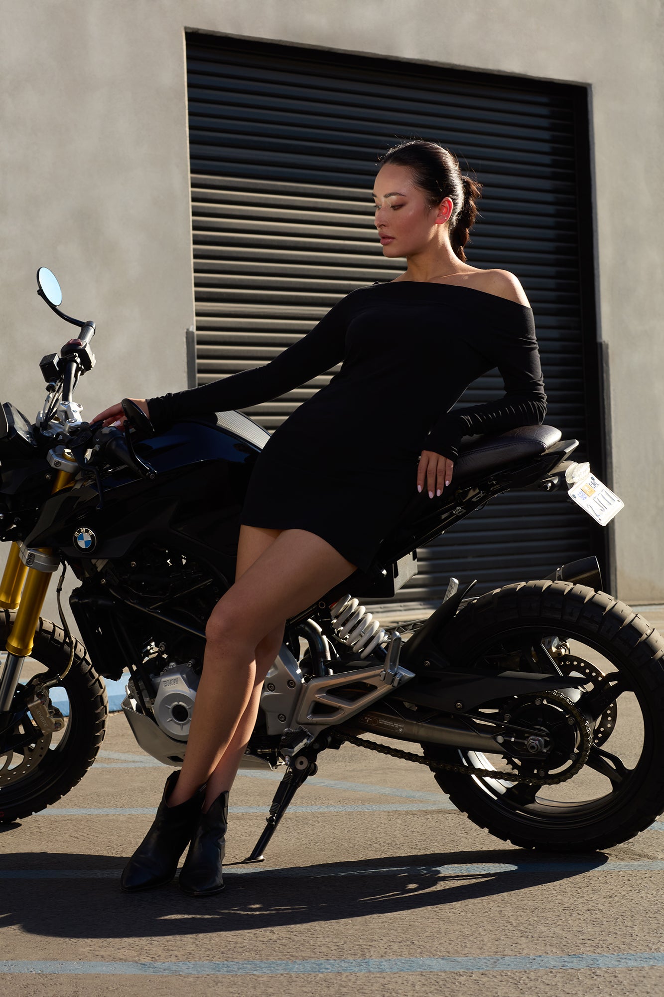 Sleek, minimal, and confidently feminine — the Off Shoulder Mini Dress delivers a sculpted silhouette with a touch of edge. Designed to be worn on or off the shoulders, this versatile style doubles as a fitted long sleeve tee or a mini dress, offering an effortlessly polished look that transitions from day to night.