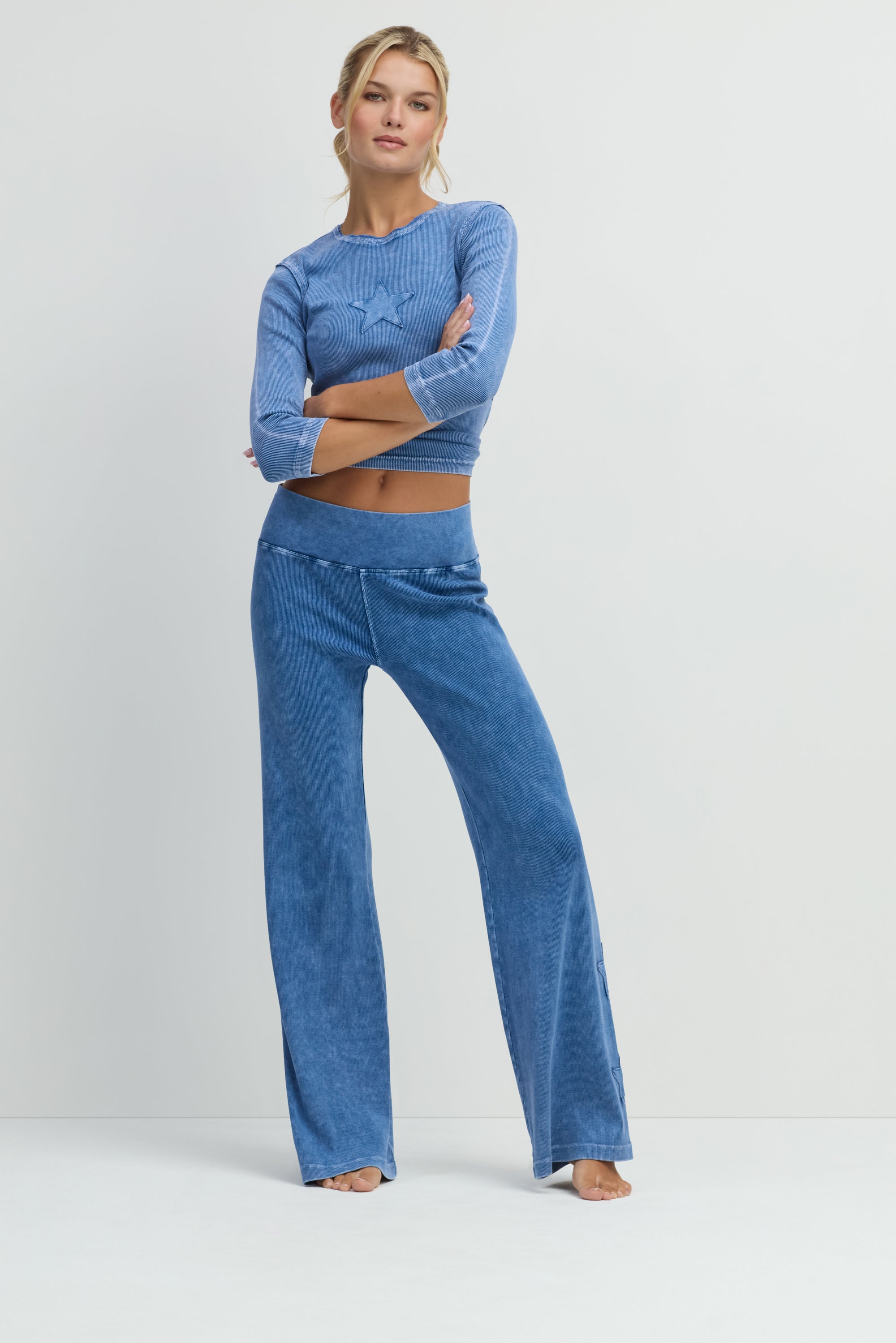 Soft, sculpting, and just the right amount of stretch — the Raw Edge Star Tee combines casual comfort with iconic style. Made from ribbed cotton with spandex, this top hugs your body while moving effortlessly with you. The 3/4 sleeve silhouette and star patch detail at the chest give it a sporty-meets-feminine vibe that’s timeless and versatile. The garment-dyed finish adds dimension and a lived-in softness, making it a go-to for layering or wearing on its own.