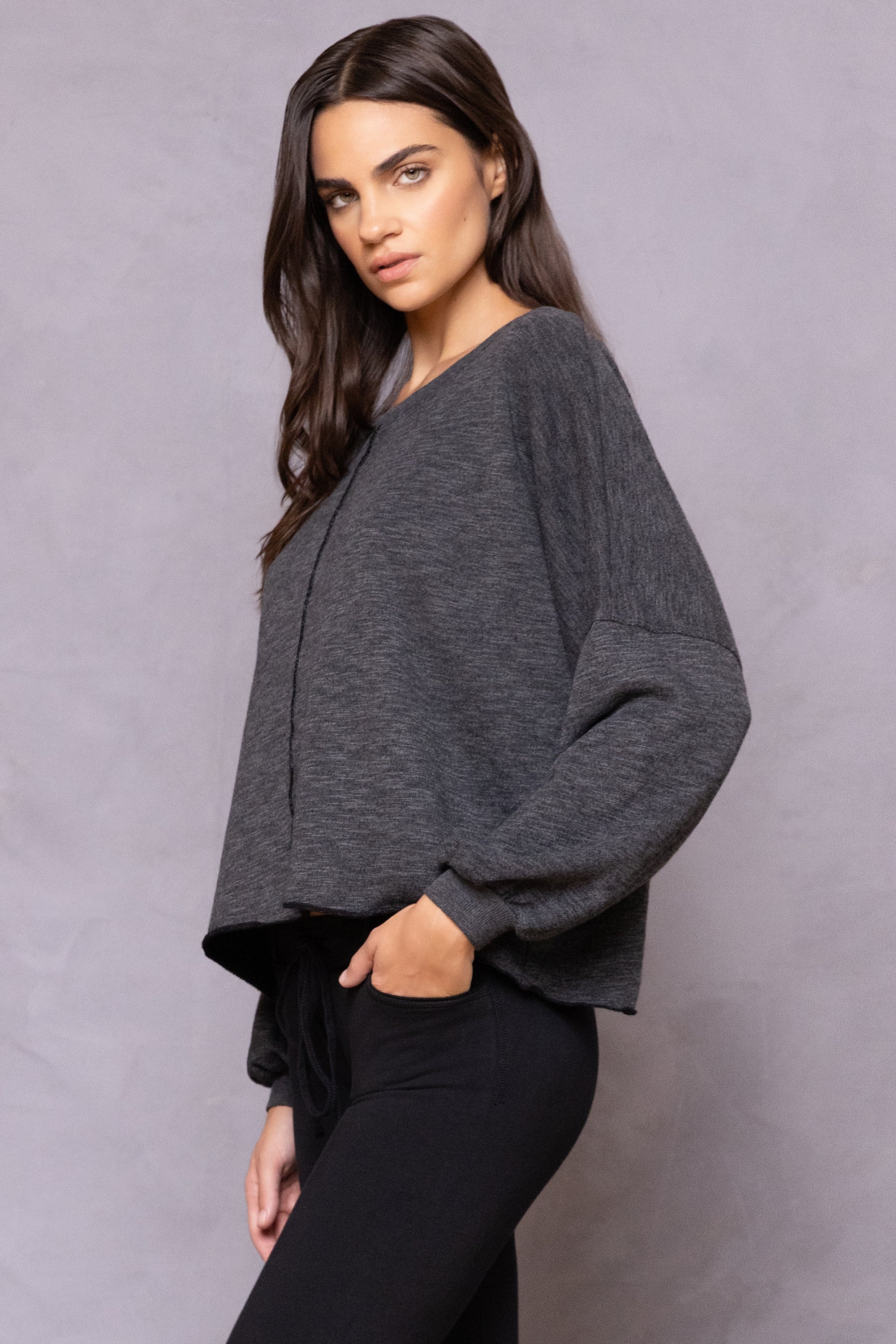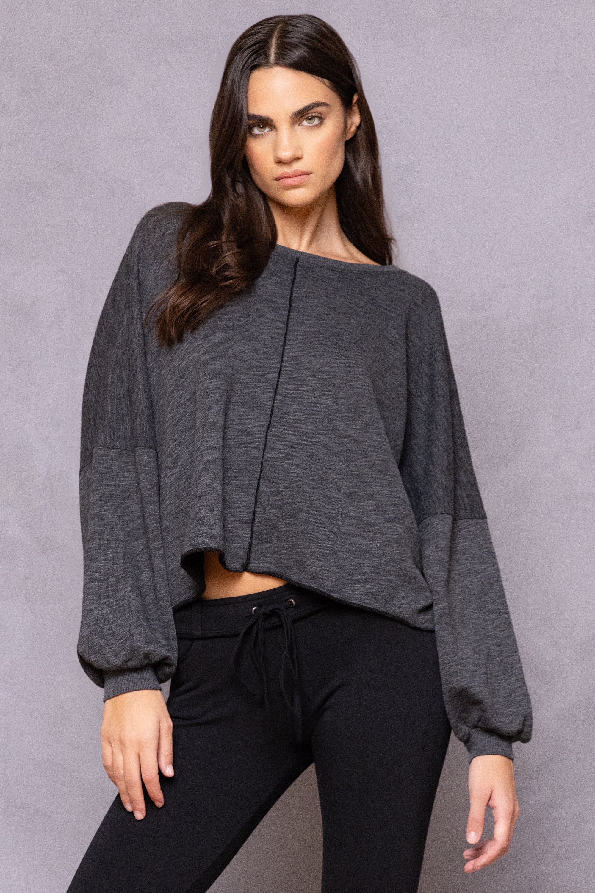 Trifecta French Terry Balloon Sleeve Crop Sweatshirt