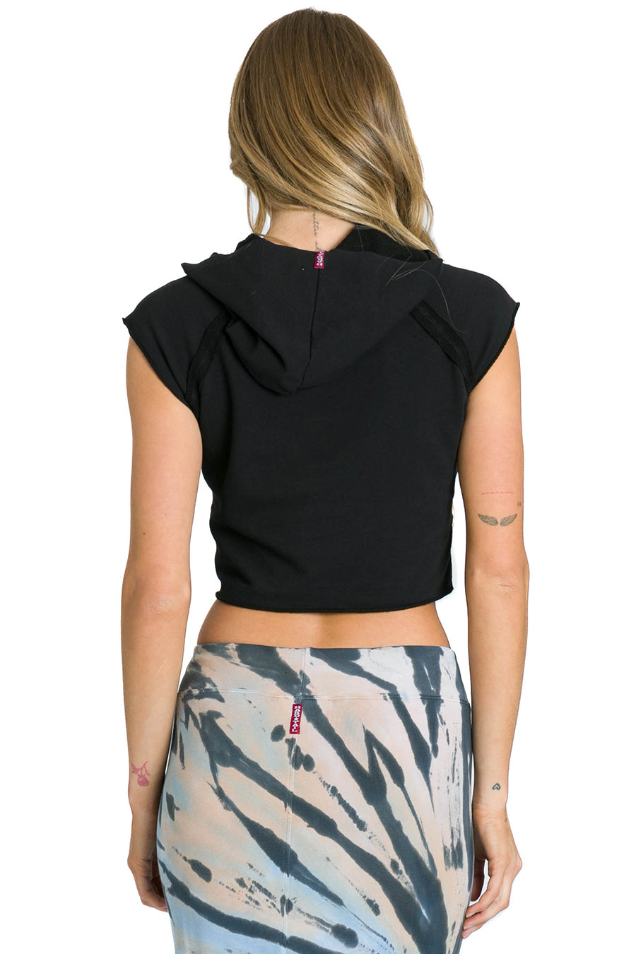 Raw Edge Crop Short Sleeve Fleece Hoodie