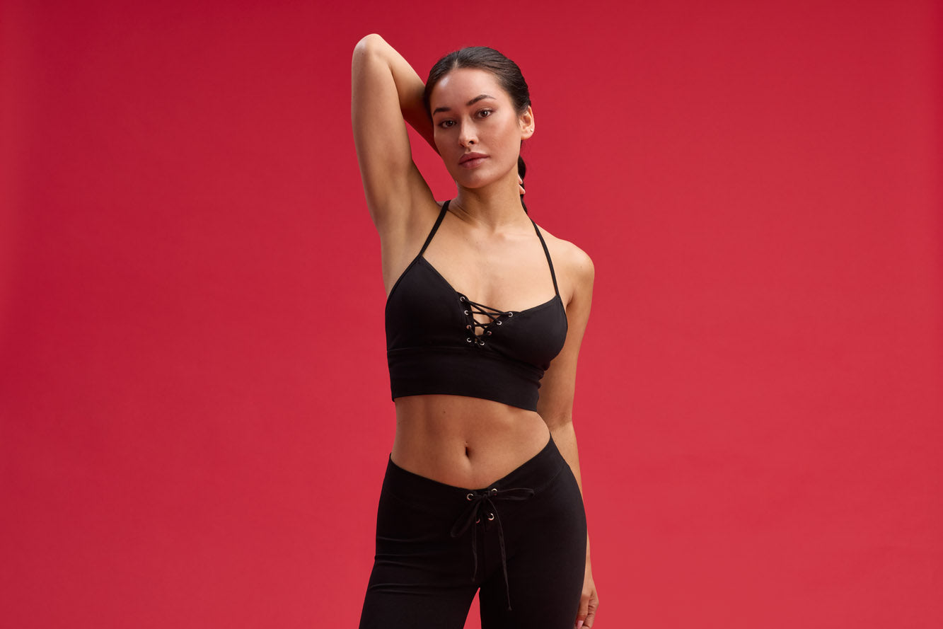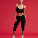 A bold, sculpted essential designed to turn heads — the Lace-Up V-Yoke Crop Legging delivers the perfect mix of sport and sensuality. The football-inspired lace-up front brings an edgy, athletic feel, while the V-shaped front yoke enhances your natural curves with a flattering, waist-defining fit. Crafted from a soft cotton and lycra blend, these capris move with your body, offering breathable comfort and a sleek silhouette. A grommet detail at the back adds a touch of unexpected hardware — a subtle, modern accent that complements the lace-up front perfectly.