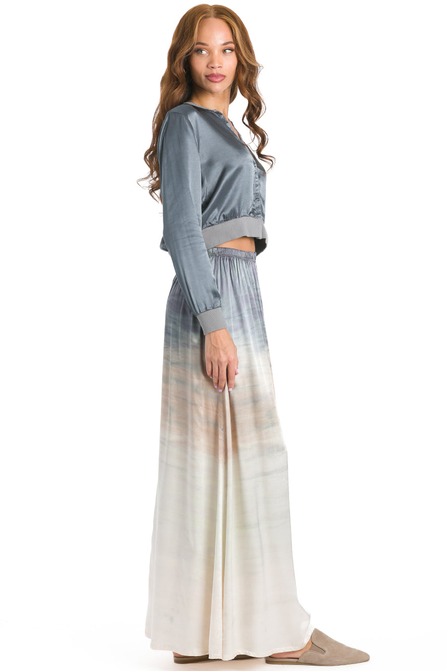Boho High Waist Satin Maxi Skirt